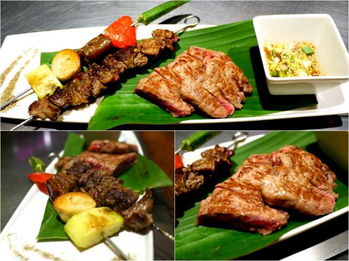 事情是這樣的…(←喂不要這麼沉重的解釋呀!!)特製泰式醬料及香料胡椒鹽的確相當不錯,不過小編和各位饕客大大一樣吃牛排重視原味不太沾醬料,首先品嘗鮮美的原味沙朗牛自然是最佳選擇,肉串本身味厚加上全熟肉的焦脆,品嘗順序放在鮮美牛排之後~享用完一系列肉品,超級甜美的季節時蔬串自然是去油解膩的最佳選擇!