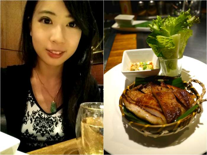 第三種吃法是包葉或直接沾上特製醬汁,總監特別叮嚀記得搭配醬汁裡的蔥粒一起入口。泰式醬汁除香料氣息外略微酸甜,搭配煙燻松阪豬也別有一番風味。