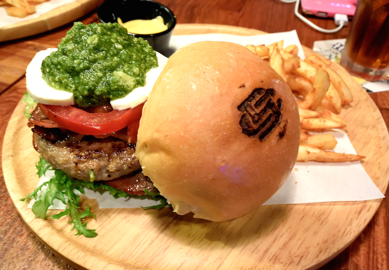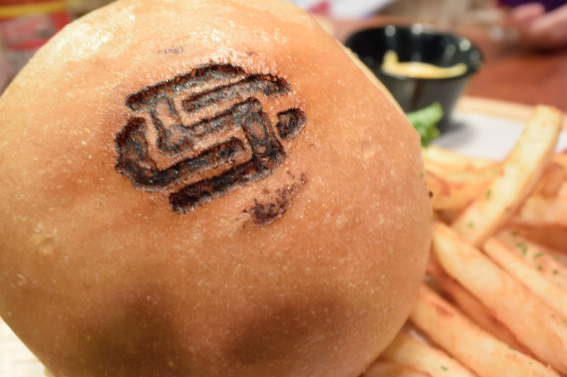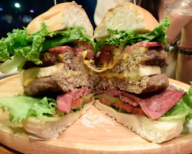 貼心老闆幫我們把漢堡切半~拍了剖面圖!
