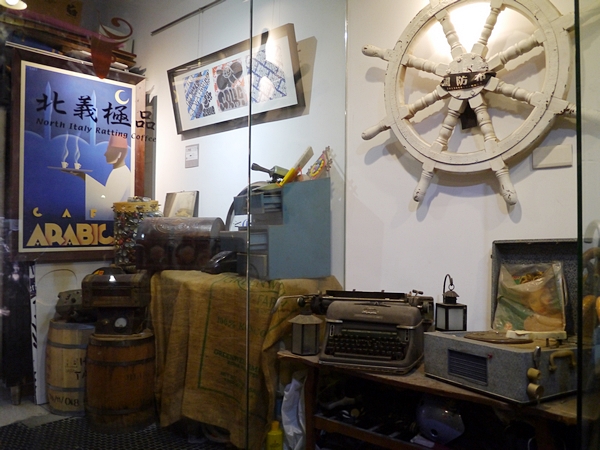 門口擺放許多有年份的懷舊物品 都是老闆從各處找來的收藏