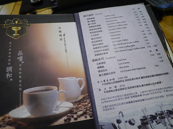 menu打開第一頁就是咖啡 有義式咖啡、濃縮咖啡、單品咖啡 選擇還蠻多的 選用世界知名的咖啡機品牌來萃取每一杯Espresso 老闆沖咖啡的手藝也經過很多協會的認證