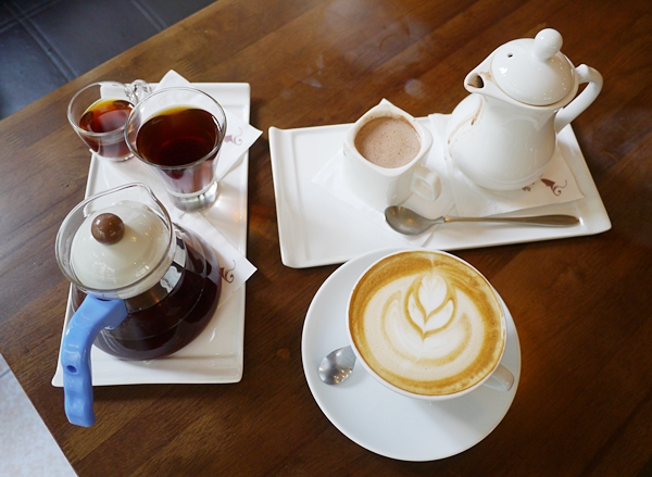 當天老闆幫我們準備三種飲料 巧克力可可、單品咖啡(衣索比亞)、拿鐵咖啡都各有特色