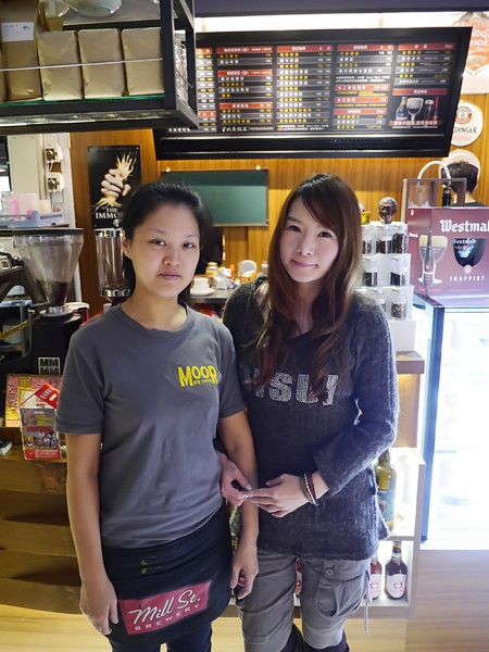 櫃台前方的酒瓶圖案很特別 連聖誕老公公的都有 不過這些台灣沒有進 就只是裝飾而已 下方才是真的啤酒 明明是間咖啡館 但是館內陳列的酒品卻比咖啡還多是怎麼一回事 XDD