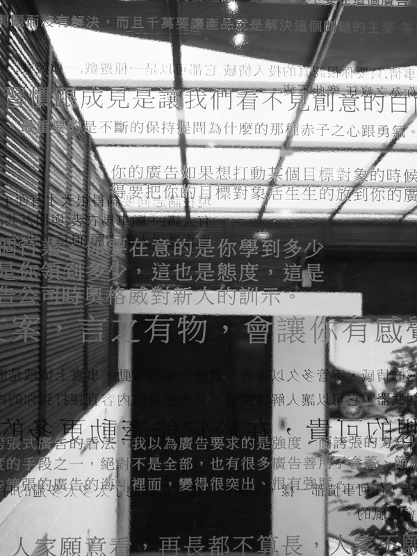 【孫大偉的書房】展也成為裝潢陳列的一部分,玻璃上的窗貼貼著孫大偉先生的經典語錄