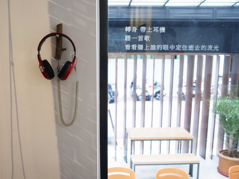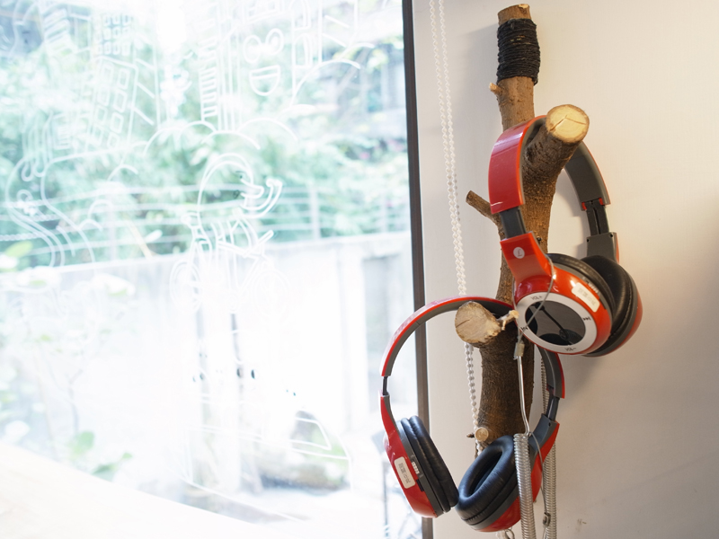 咖啡店內掛著很多耳機,各自有不同的主題, 一位歌手為孫大為先生唱的歌