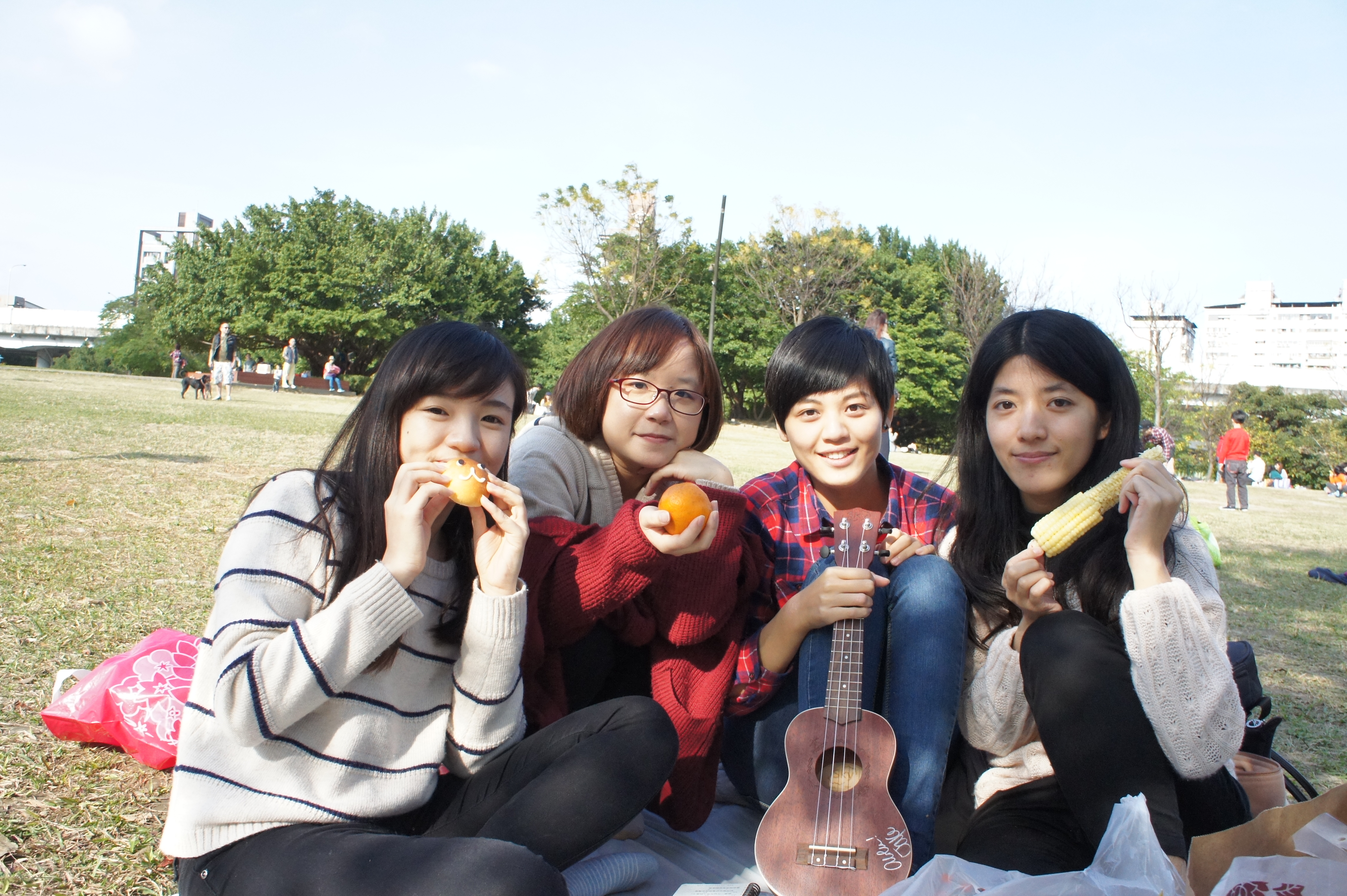 這隻是野餐當天和附近的野餐客搭訕來的可愛小柴犬,四個月大,女生,名叫momo~ (會不會有主人來認親啊XD) 身為一群喜歡小動物的少女們,野餐除了享受食物和陽光外,草地上跑來跑去的狗兒們也是我們關注的焦點~ 「你看那隻柯基腳好短!」『那裡有一隻黑色的鬆獅犬!』「你看!那隻黃金獵犬戴墨鏡!」 等等的少女尖叫聲此起彼落,完全是醉翁之意不在酒(笑) 毛小孩也是野餐日令人心情大好的因素之一呢~