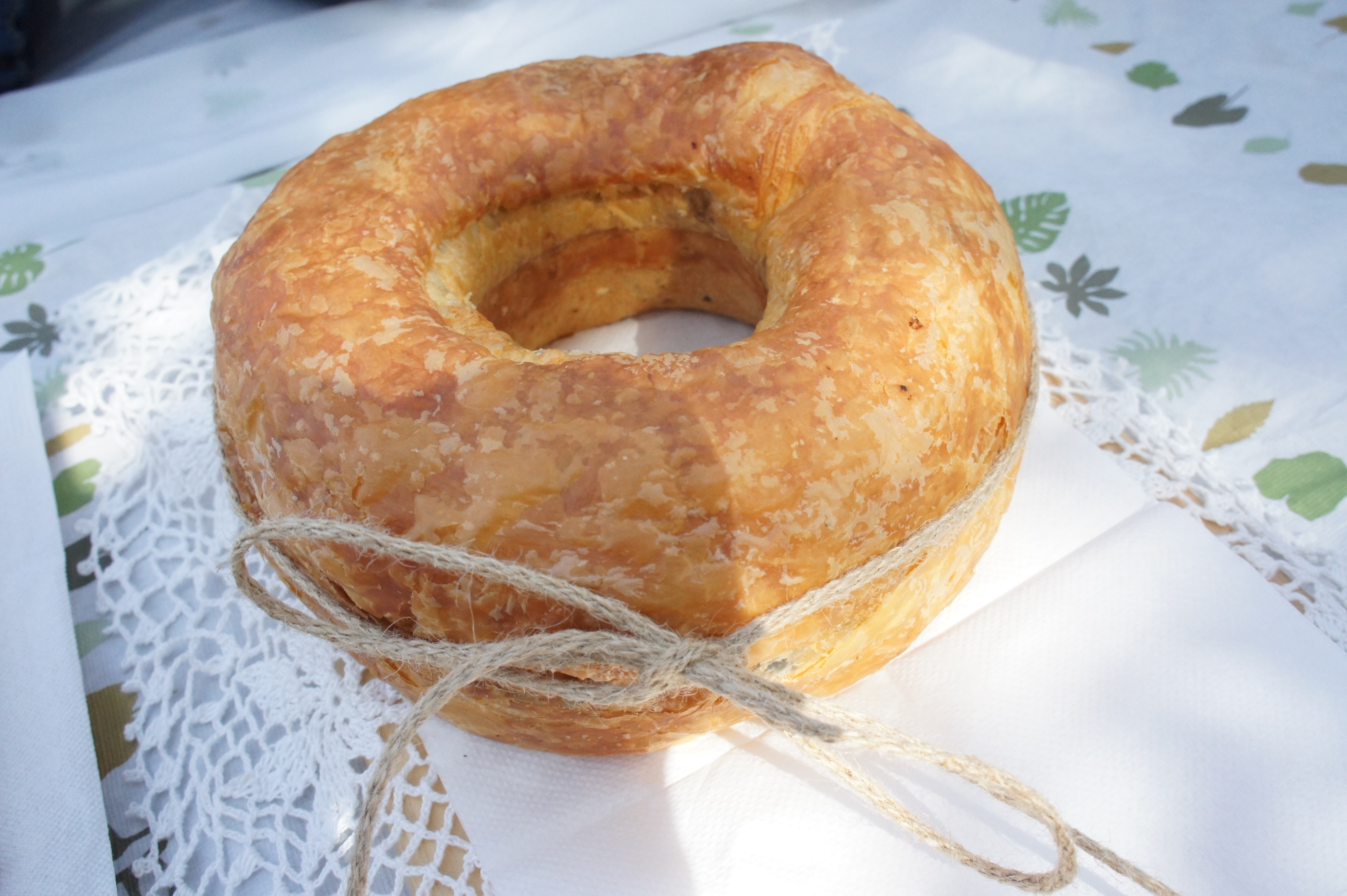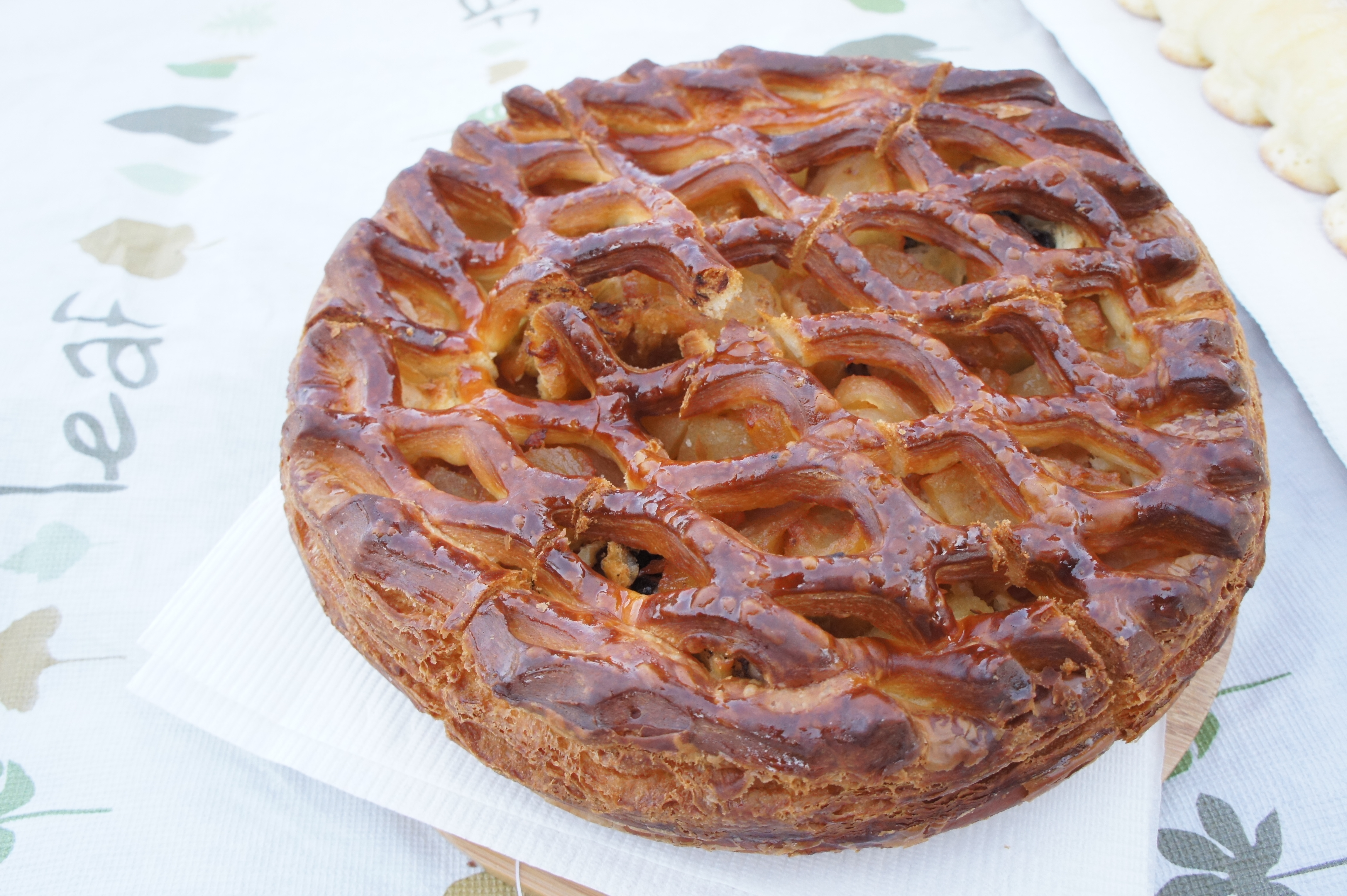 愛天空人氣第一名的魔幻巧克力圈,模樣像是直徑約18公分的超大甜甜圈,實際上卻是麵包。用的是丹麥麵包麵團,混入苦甜巧克力豆,烘烤後,外表酥香,內層紮實帶點Q度,充滿層次的口感,每一口都帶著巧克力的香甜味,喜歡巧克力的朋友一定會愛上他! 上頭的麻繩是自己綁上去的,追求鄉村風的假掰少女必備小物XD ▲ANTIQUE愛天空-愛天空蘋果派 $170