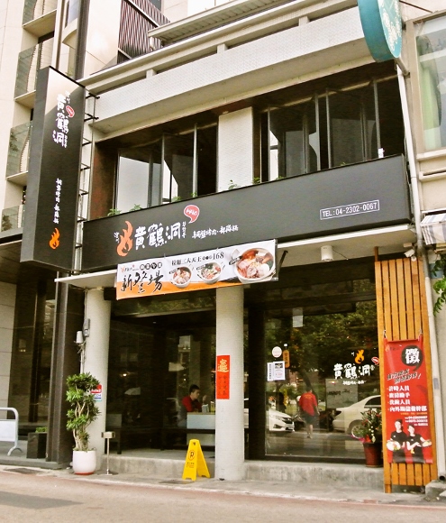 經過市民廣場,就會看到黑色的招牌上有顯眼的橘色火焰logo及黃鶴洞三個大字,非常容易找到。