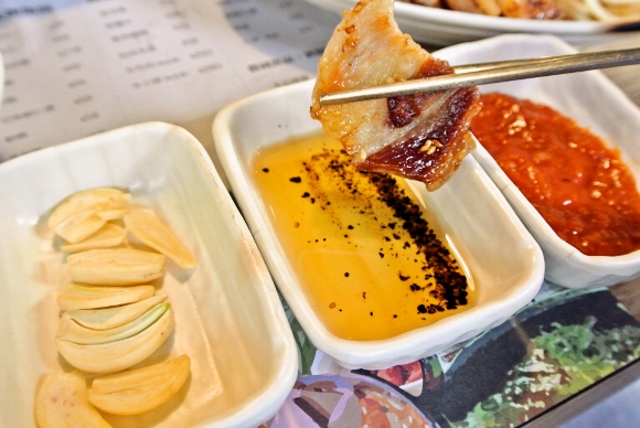 烤到滋滋聲的肉片,沾上清甜的銅盤沾醬,非常美味。