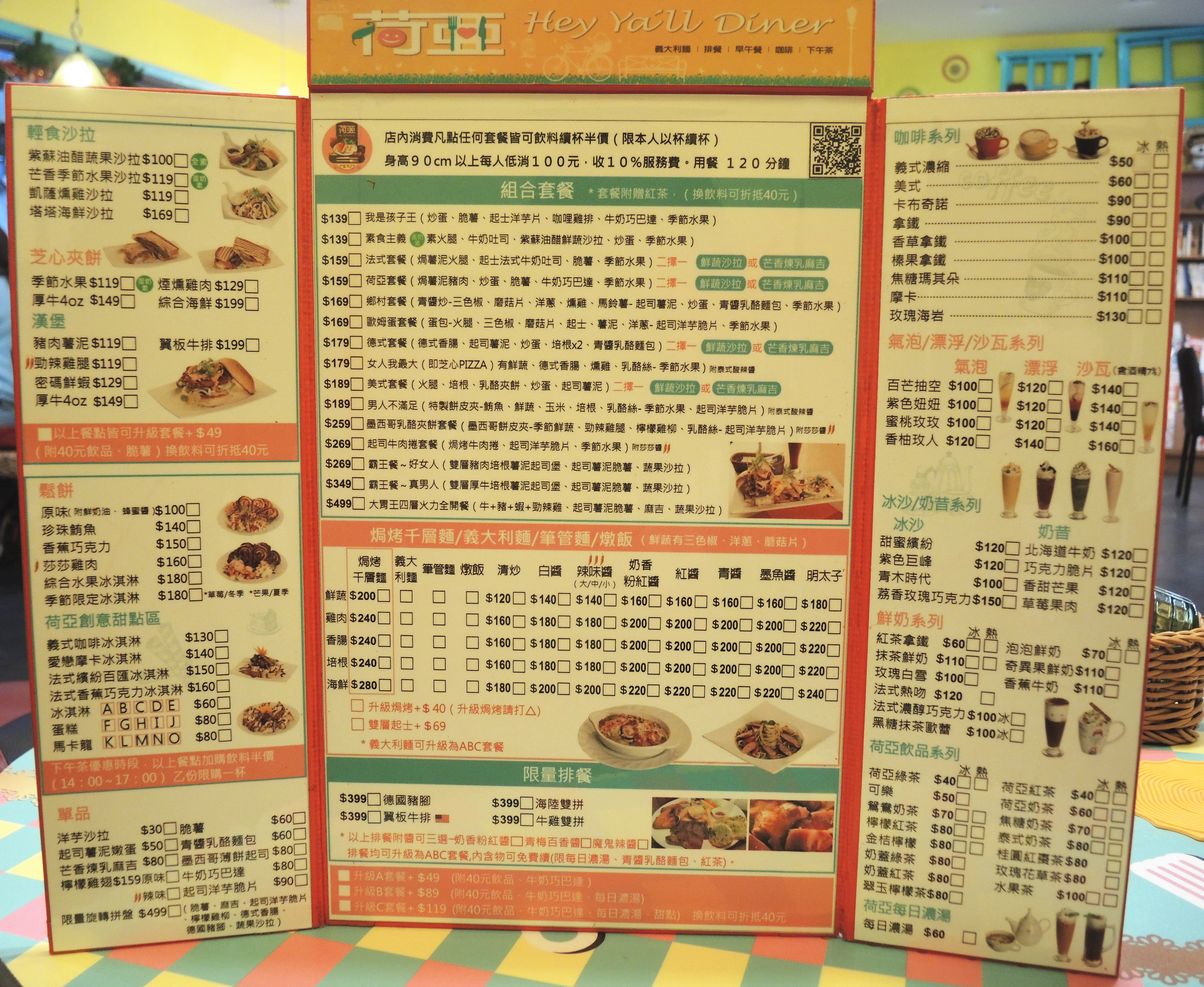 他們的餐點多樣化,有基本的排餐、義大利麵、漢堡、燉飯、下午茶,還有焗烤千層麵、芝心夾餅、法式焗烤PIZZA等等