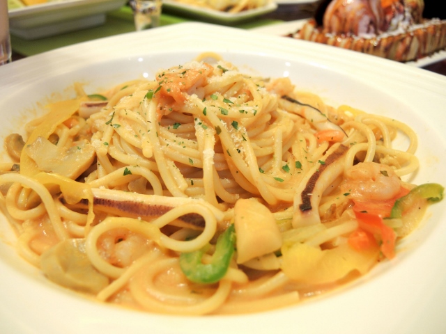 義大利麵軟硬度適中,粉紅醬的味道很特別