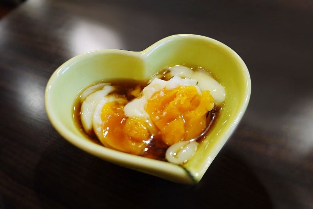 老闆的自製醬汁配上涼涼的溫泉蛋,醬汁完全不會蓋過原有蛋的味道,但嚐起來有種淡淡的醬味。