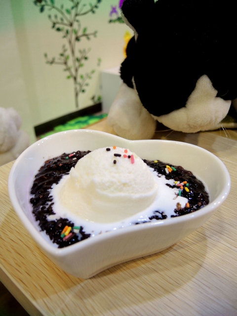 加上上面的冰淇淋 融化在紫米裡
