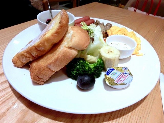 陽光加州也是店內招牌早午餐之一,有炒蛋、香腸口味比較偏向中式,配上兩片不一樣的甜麵包,味蕾就在鹹跟甜之間交錯,大家可以嘗試看看!