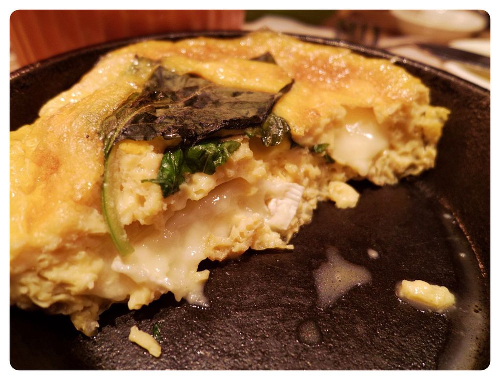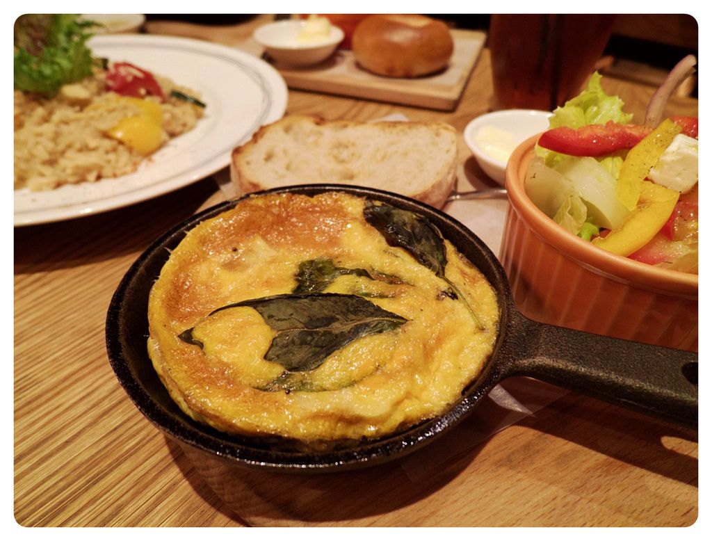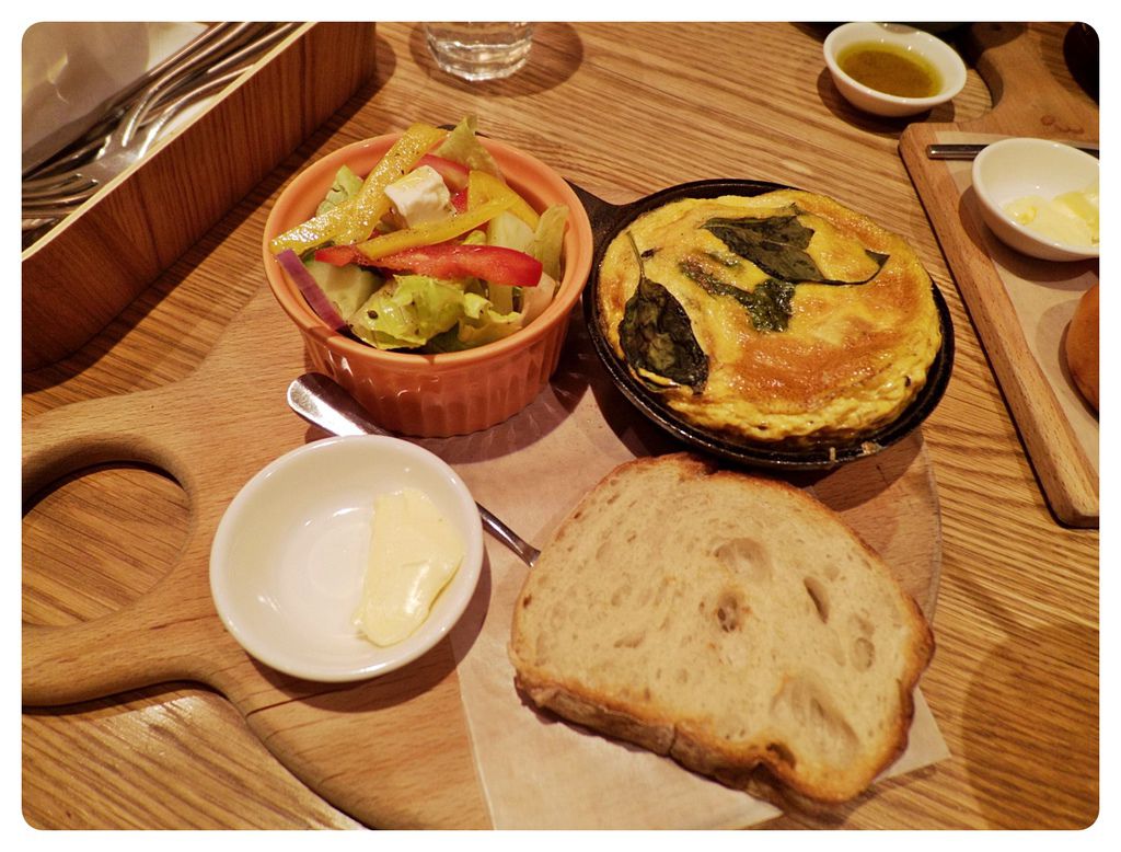 烤蛋簡單地加了起司、蛋、羅勒,大家都知道蛋類料理光是這樣就有多美味