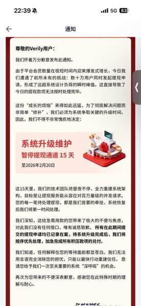 結果投沒幾天顯示系統問題不能提現到20號