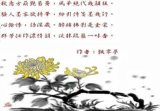 淡抹疏籬一味香,菊黃秋韻唱雲裳;醉來杯酒迎風破,墨去清風愚世長。