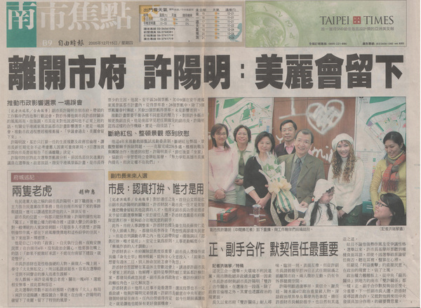 有民進黨大砲之稱的副市長許陽明,卸下職務後,將主力放在民進黨改革事物;他在台南市所留下來的事跡與建設,應可讓過渡批評他的人,深深反省。
