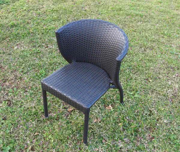 ◎ 椅框以鋁質製作,椅背及椅座以膠藤編織。
