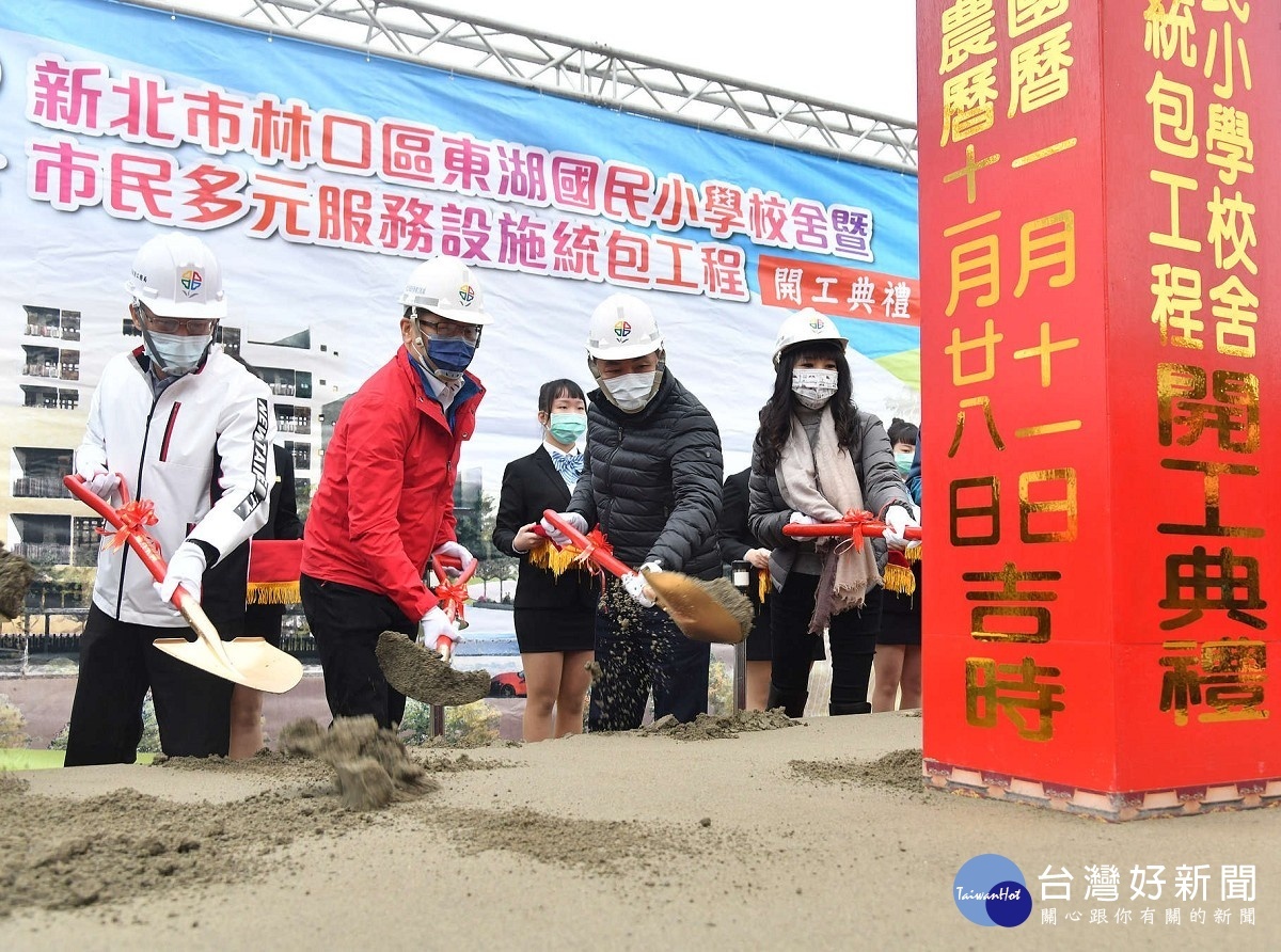 新北市林口區東湖國民小學校舍暨市民多元服務設施統包工程11日開工動土,市長侯友宜親自主持儀式,只新北市府斥資9億6千萬元興建東湖國小,預計112年8月一、二期工程皆結束後可招收1400位以上學生,讓孩子學習不中斷。