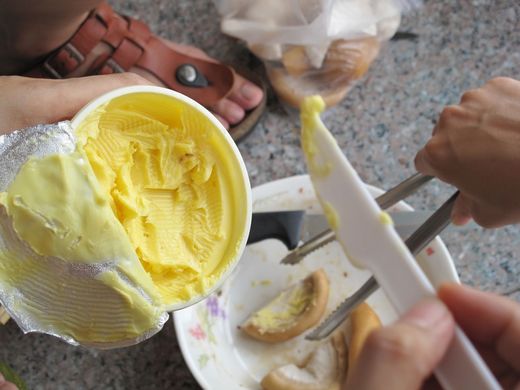 除了大姐頭跟著米糕烤完全程,女主人忙著準備接待,不會吧~才幾個人買了一顆花蓮西瓜,根本就吃不完,就算打成汁還是喝不完丫~其他的我們,只能幫忙塗塗奶油啦、端端盤子啦,老實說這次買的東西~真的是太多啦~女孩子總是小胃口~哪吃得下那麼多~其他叫大姐頭打包回去加菜啦~不然真的是浪費食物~