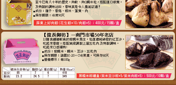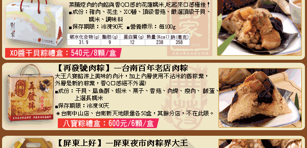 其他還有台南再發號,屏東上好肉粽,內灣大嬸婆小南門的億長御坊,現場還有九如肉粽