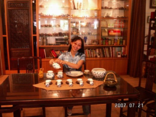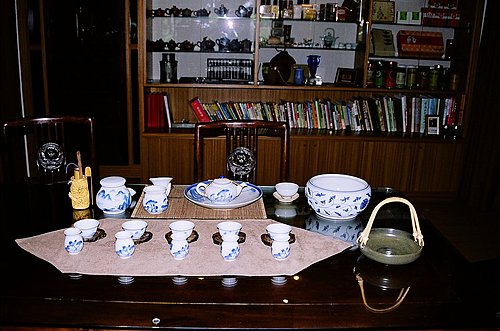 這是品茗藝術班的伙伴,為新書發表會擺設的茶席之一,與百年老字號王有記茶行,似乎融合為一體。