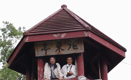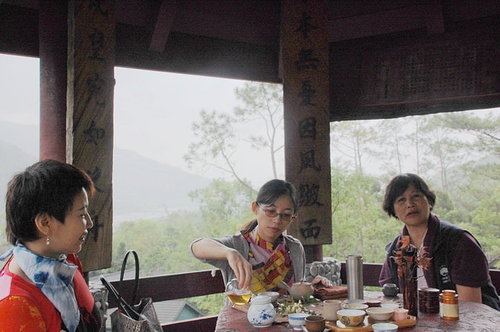 設備齊全的我們,瓦斯爐、茶具等俱全,就選在半山腰的「旭東亭」,意味著旭日東昇,茶香滿溢。