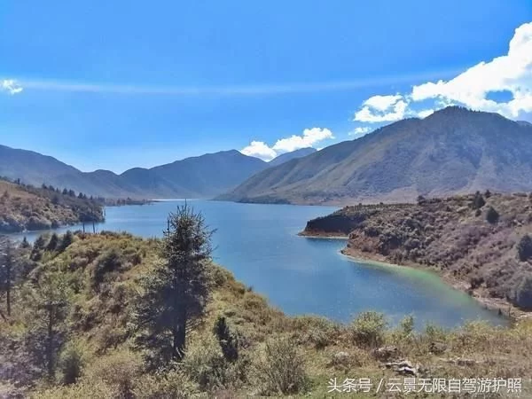 冶勒湖终年水光粼粼、清澈如镜,宛如镶嵌在群山中的一颗晶莹剔透的蓝宝石,在阳光下熠熠闪亮、温润如凝,平铺在千山万壑中,宁静秀美。