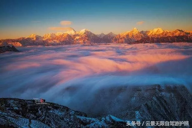 天气晴好的日子里,贡嘎雪山被朝辉晚霞所染,日照金山的那种瑰丽辉煌,非亲历无法想象。大雾弥漫中,太阳刚出来的时候非常具有神秘感,给人一种静寂岭的感觉。