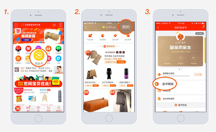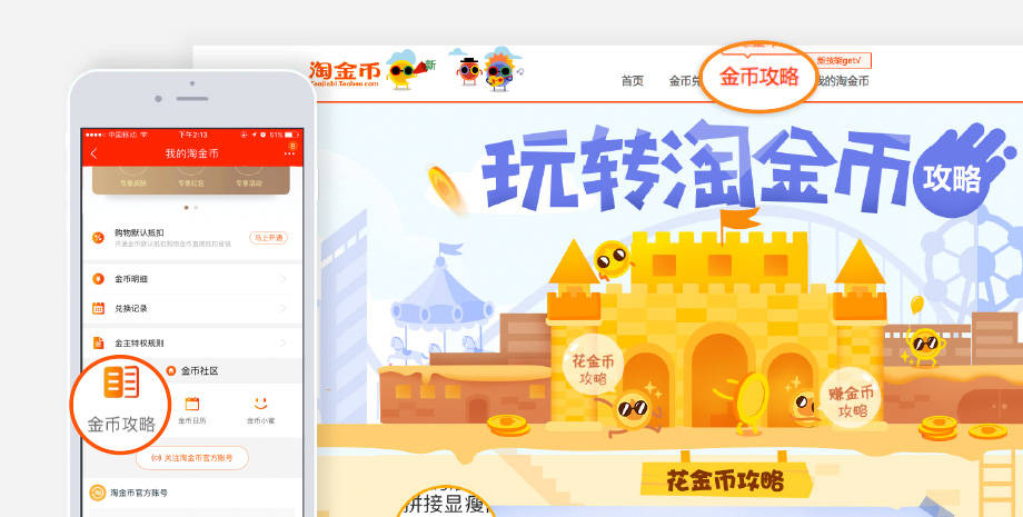 “手机淘宝—领金币—我的—金币攻略”查看金币使用规则或
