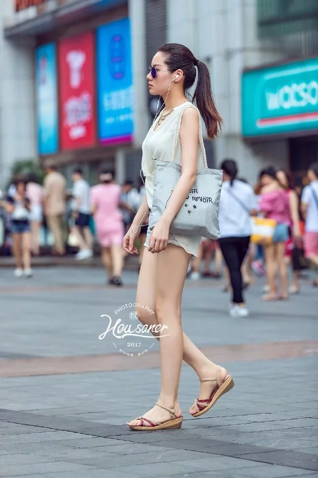 白色轻薄背心搭配浅色磨边短裤,干净利落而清爽简约。绑着的马尾和无搭配首饰让人想起学生时代的自然纯粹。清清爽爽、自自在在是多舒适的感觉啊~