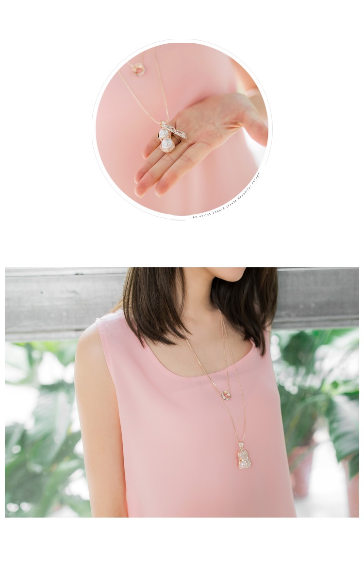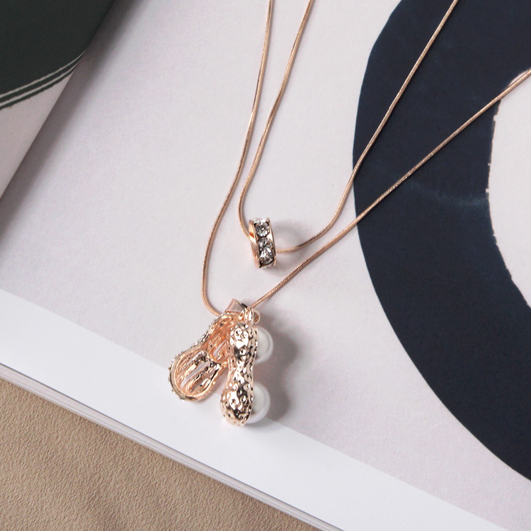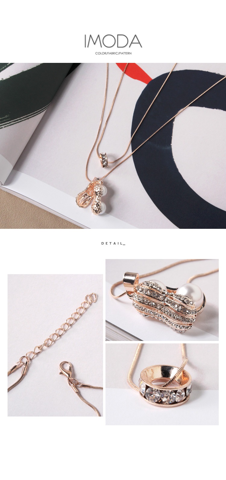 0622新品 珍珠花生綴碎鑽殼層次金色長項鍊