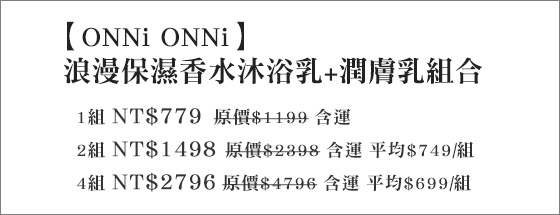 商品訊息簡述: 平均每組最低只要699元起(含運)即可購得【ONNi ONNi】浪漫保濕香水沐浴乳+潤膚乳組合1組/2組/4組。