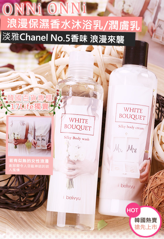 宅配韓國百貨專櫃17Life獨賣,浪漫保濕香水沐浴乳+潤膚乳組合,淡雅Chanel No.5香味,浪漫來