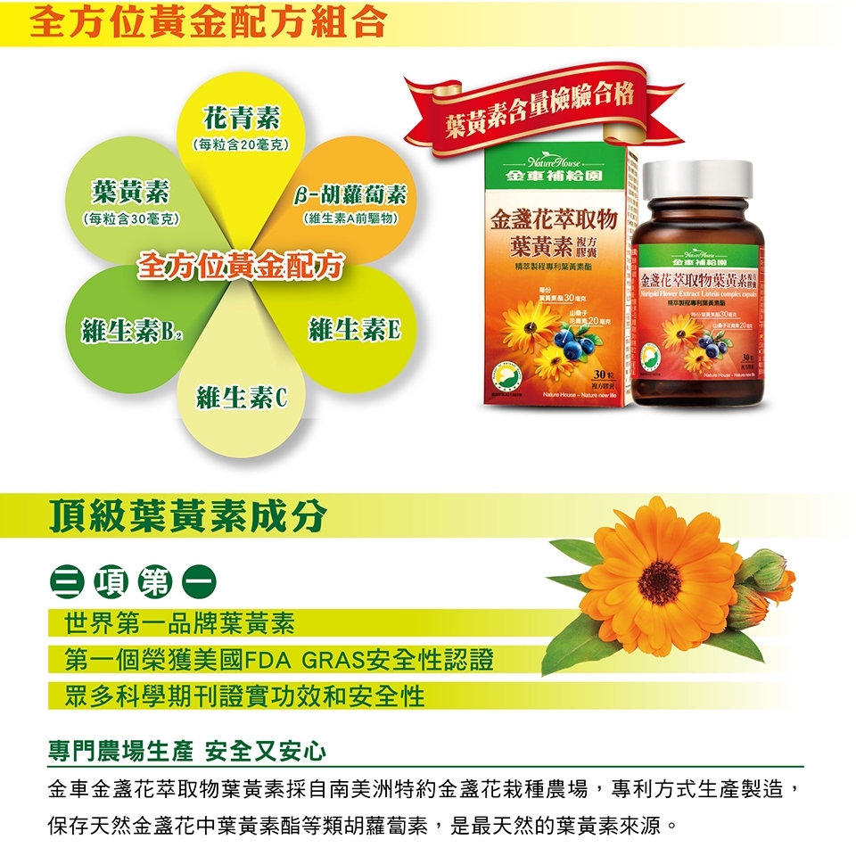 【金車補給園】金盞花萃取物葉黃素複方膠囊(30粒)詳細說明: