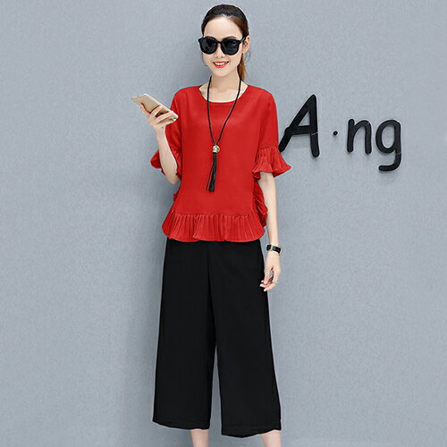 韓版寬鬆雪紡闊腿褲套裝兩件套(6色M~4XL)*ORead*