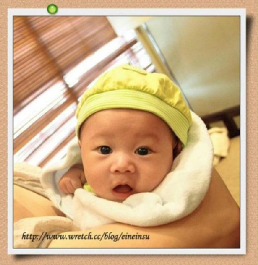 小肋骨與TACO大爺訂婚那天,冬瓜弟戴著一頂冬瓜小帽現身,可愛得不得了,大家搶著抱。他就乖巧的轉著咕嚕嚕的大眼睛,很好奇的看著這個世界、這些搶著抱他的大人。