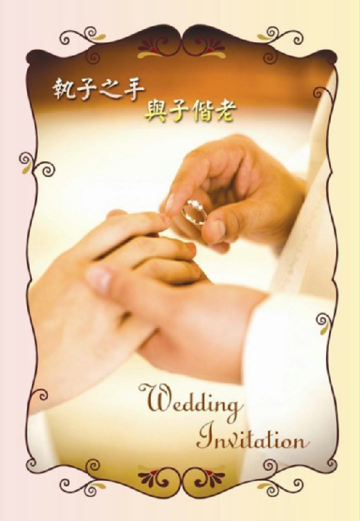 『我們將於2007年9月9日下午3點,在台中市柳原長老教會舉行TACO與Ein的結婚感恩禮拜,在上帝與眾人的見證下誓約。誠摯的邀請大家前往教堂觀禮,一同分享我們的喜悅。並於晚間6點設席於台中全國大飯店。恭請 闔第光臨。』