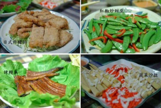 ☆↓↓↓這是當天的菜色。我的盤算是,兩道主食:「紅酒燉牛肉飯」+「奶油白醬雞肉螺旋麵」,吃飯吃麵都隨意。再煮幾個簡單的配菜,即可。「日式炸豬排」、「紅椒炒甜豆」、「蒲燒鰻魚」,最後一個奇怪的蔬菜沙拉,其實是要配紅酒牛肉的蔬菜。