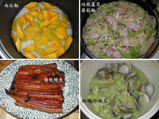 南瓜飯:這張照片是生的,煮熟之後忘記拍照。結果一整鍋南瓜飯竟然吃光光耶?!.....大家真厲害啊~,我原本以為飯很有可能會吃不完剩下的說~![]()