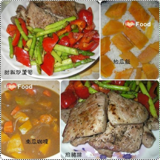 假日晚餐‧煎豬排&甜椒炒蘆筍&南瓜咖哩