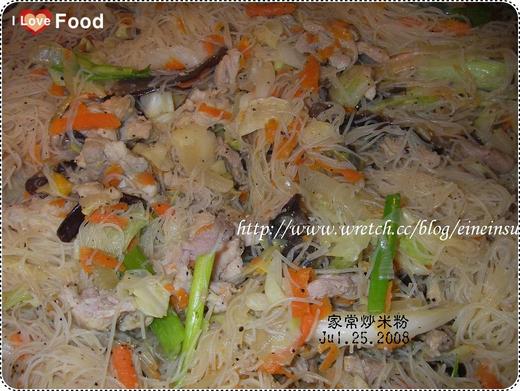 原先預定想煮的食物,卻在走進市場的那一剎那,眼角瞄到一位歐巴桑提著的塑膠袋裡面有一包乾米粉,登登登~登,馬上想到家裡還有一包乾米粉遲遲沒有煮,血液裡面「愛吃炒米粉的因子」瞬間推翻原先想好的菜色,二話不說馬上改變主意:擇日不如撞日,今天晚上就來吃炒米粉吧!(←果然是善變的女人啊~,哈哈)