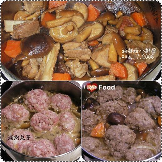 吃光了小排骨,剩下的鮮香菇紅蘿蔔塊及滷汁,第二餐再拿來煮超大顆的肉丸子,每一顆都有一個拳頭那麼大Kan,絞肉只拌了洋蔥細末進去,調味摔出黏性,稍微燉一下便很入味,滋味十足。