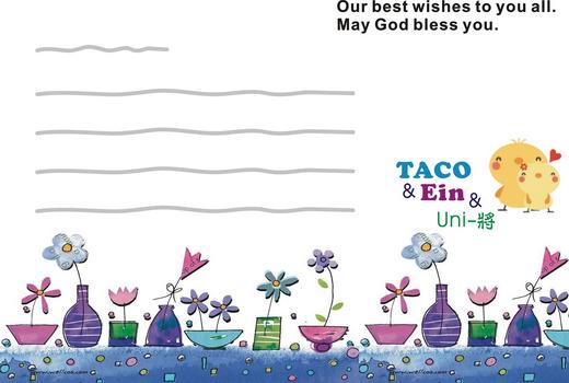 BUT,TACO沿襲日本友人的習慣,每年都要收/寄賀卡,也有一些外國友人每年得要寄卡片問候,尤其是這種"個人化家庭式"的卡片,所以囉~,肋骨只好跳上火線,每年擠出一個賀卡版本給他使用囉。