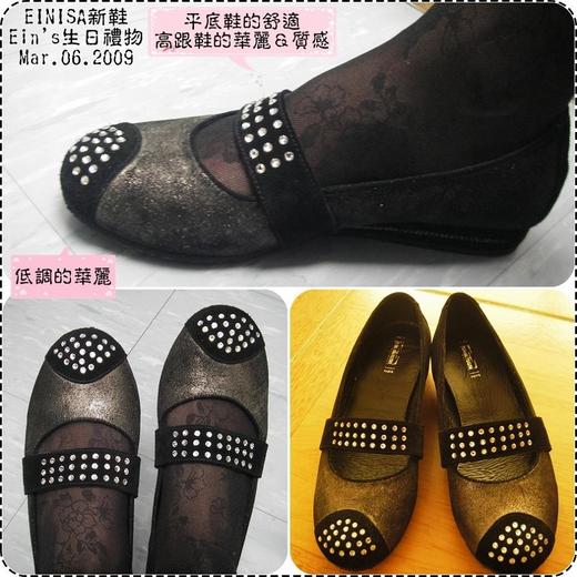 沒想到,後來,意外發現了"EINISA Paris"的這雙,試穿之後馬上被閃亮亮的水鑽吸住,無法自拔。...店員在旁邊一直強調這是swarovski的水晶,所以很閃亮。而且如果掉鑽的話可以拿回去免費修補,巴拉巴拉.....(我的媽呀,年紀大了,果真就會喜歡Bling Bling的東西啊