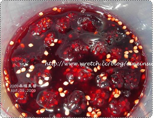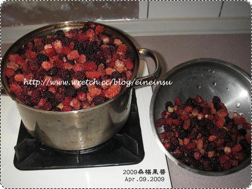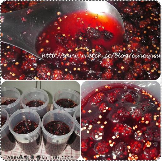 (TACO大爺出差外地,晚上打了幾通電話回來,聽到的都是"正在剪桑椹"、"正在洗桑椹"、"正在切桑椹"、"正在煮桑椹"......他忍不住大叫:『妳怎麼弄那麼久啊?!』.....我也沒辦法啊,真的很多捏~