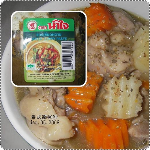 肋骨選用的是道地泰國進口的綠咖哩醬「有心」,一包100G,煮一大鍋咖哩只需使用1/2的量,就足以讓人噴火啦!