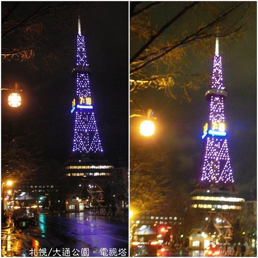 抵達札幌之後,先去大通公園的札幌電視台的電視塔。仿東京鐵塔造型,高度達147.2公尺,是每年札幌雪祭與花祭舉辦的地點,也是札幌市的地標物之一。夜間打了燈光,非常漂亮。(其實這時候,我們根本就是又餓又冷,濕冷的空氣非常冷冽,速速喀咂幾張照片就趕快跳回遊覽車上)