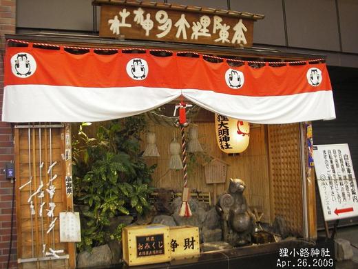 狸小路神社。非常迷你,只有一間店面的大小,深度大約只有一般騎樓的1/5吧,但是,神社雖小,一應俱全。(有一隻狸貓石雕)
